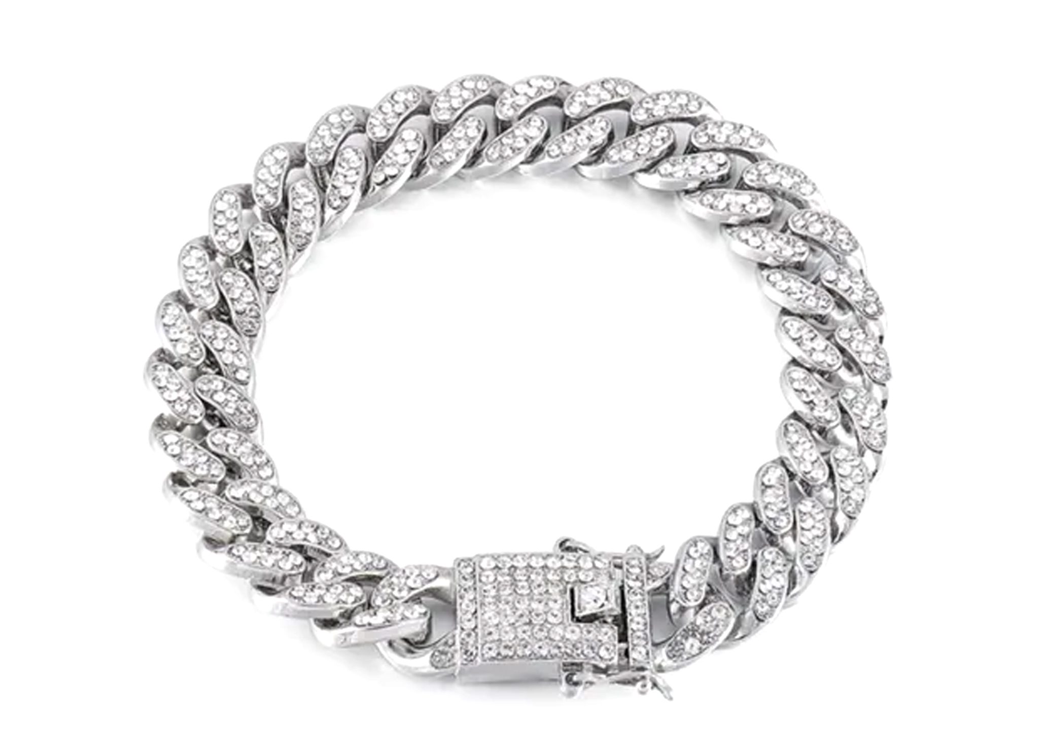 צמיד גורמט כסוף משובץ זירקונים צבע כסף לגבר. הצמיד משובץ בזירקוני AAAA בחיתוך יהלום.