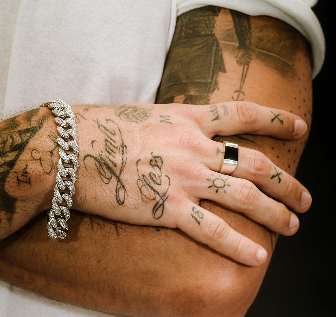 צמיד גורמט כסוף משובץ זירקונים צבע כסף לגבר