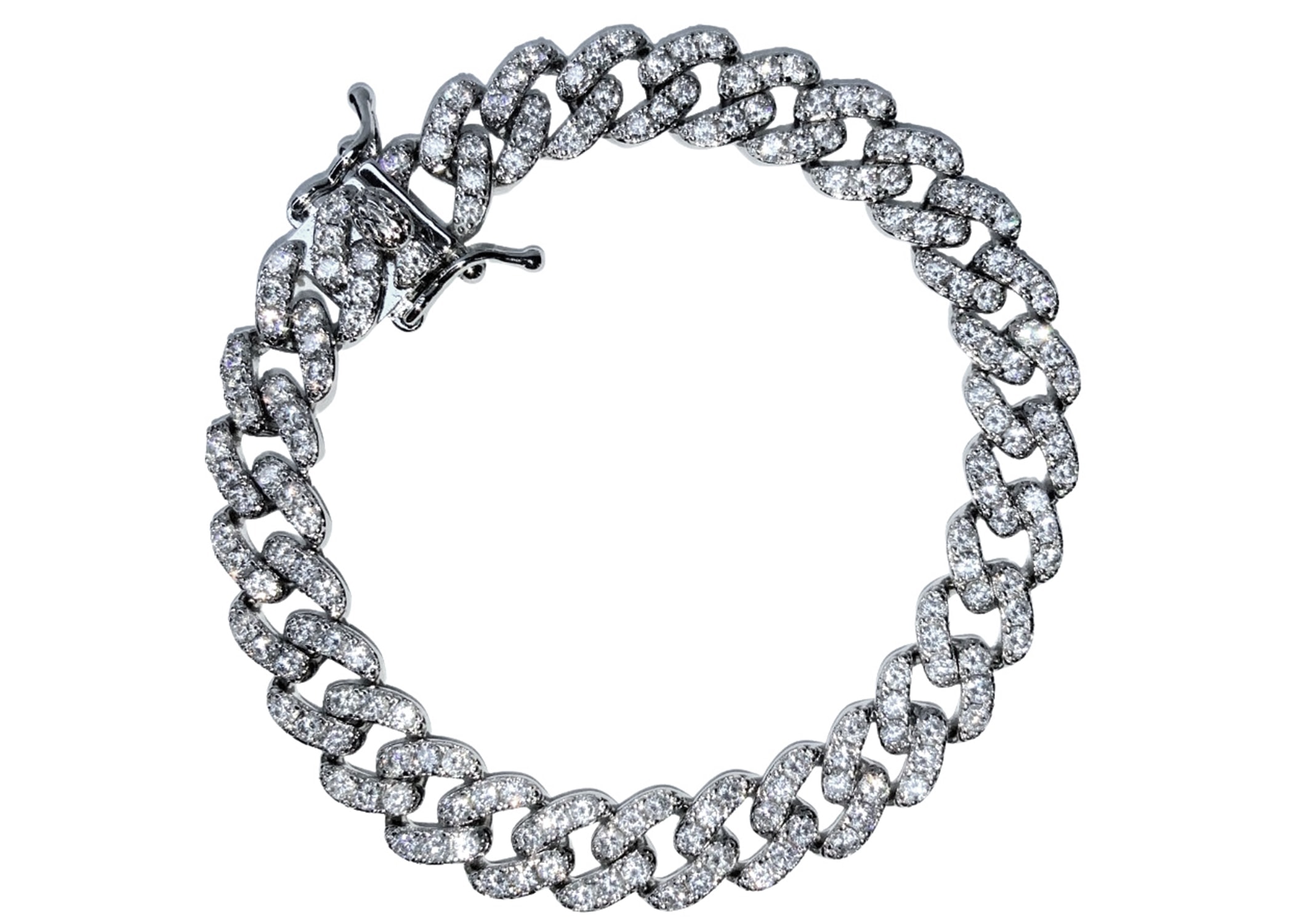 צמיד גורמט כסוף משובץ זירקונים צבע כסף לגבר. הצמיד משובץ בזירקוני AAAA בחיתוך יהלום.