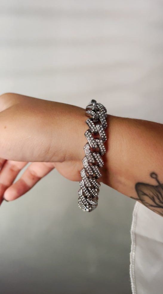 צמיד מלא בסטייל שישדרג לכם את כל הלוק. לצמיד יש סוגר חזק ואיכותי עם חוליות גדולות ונעימות למגע משובצות בזירקונים מבריקים.
