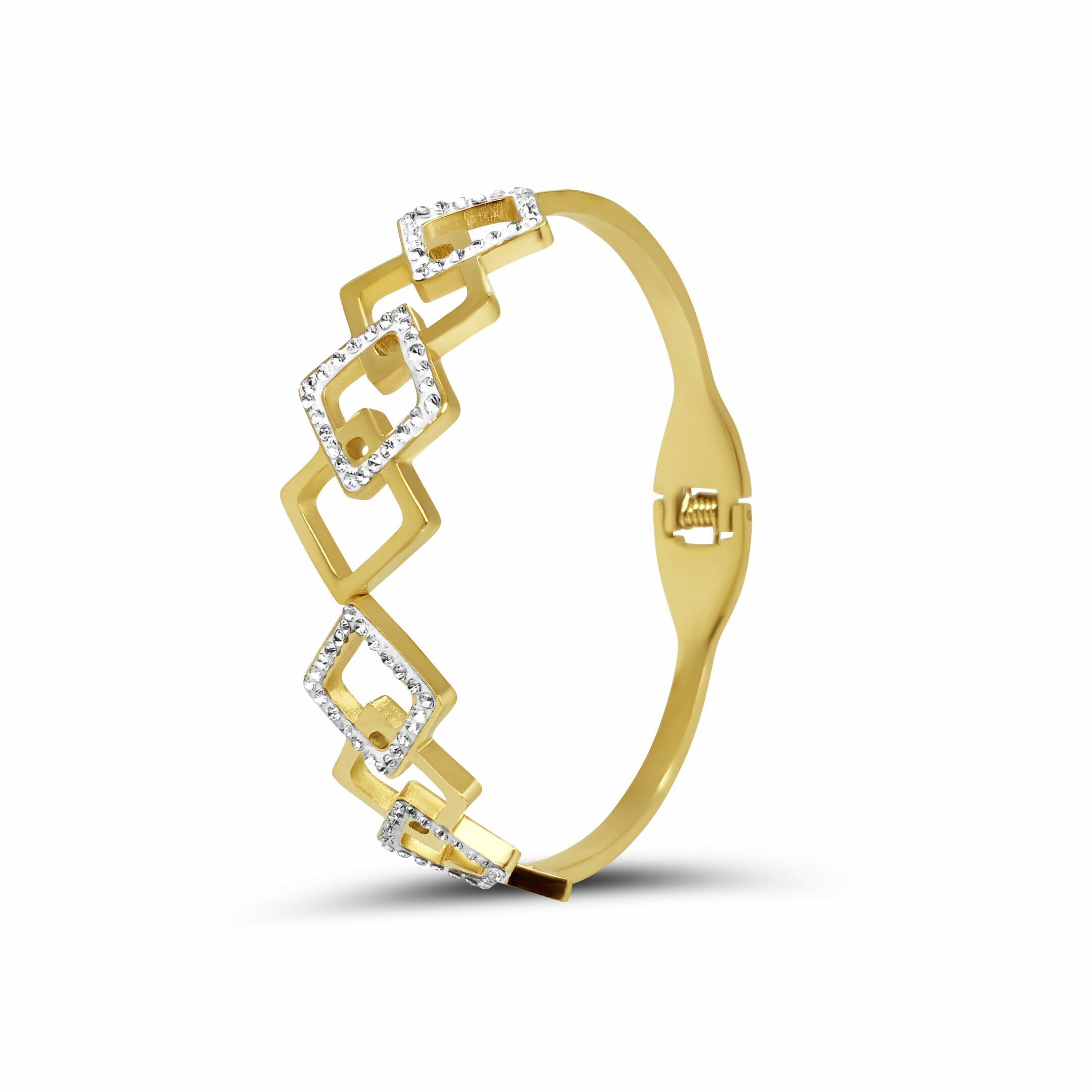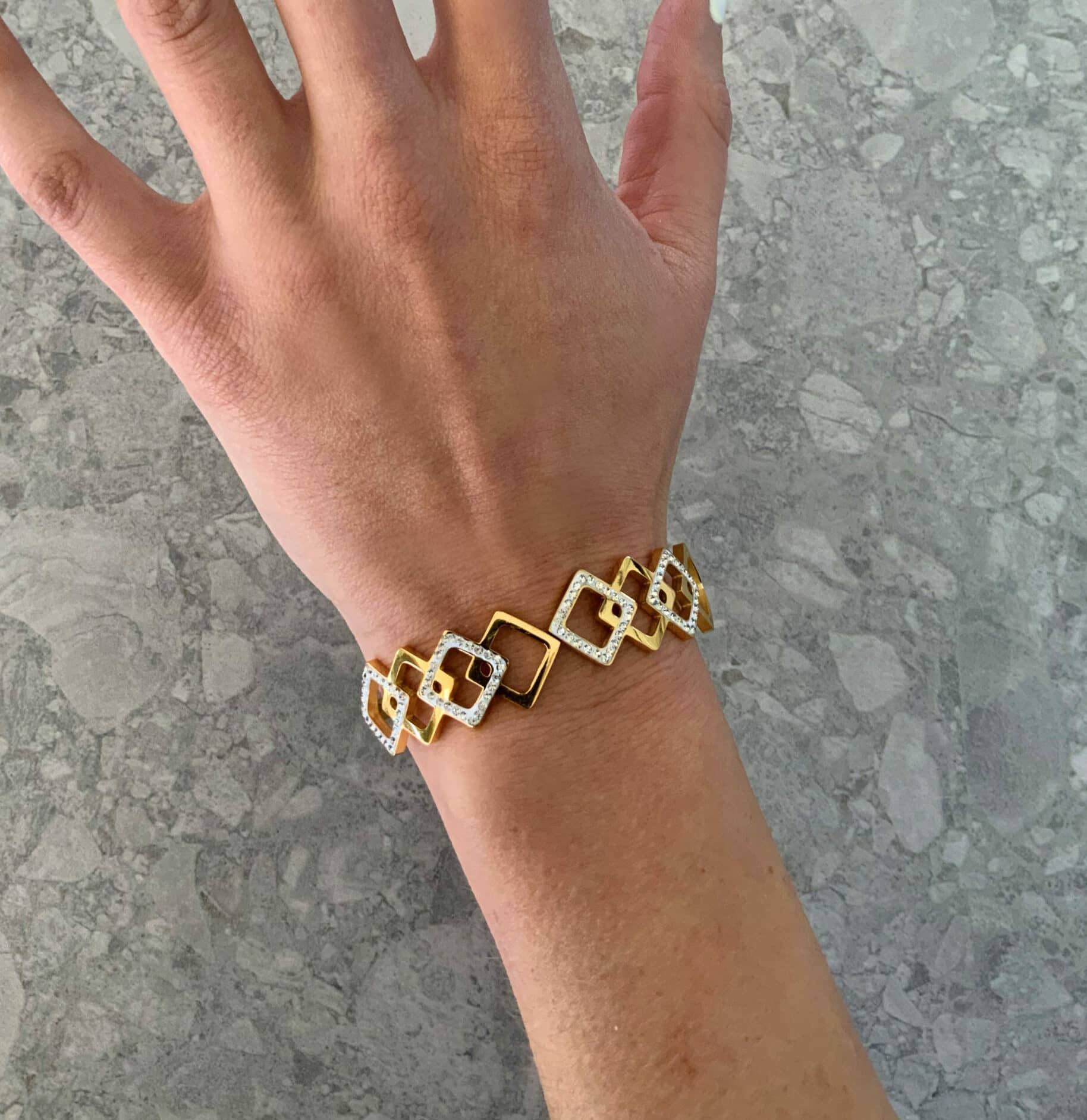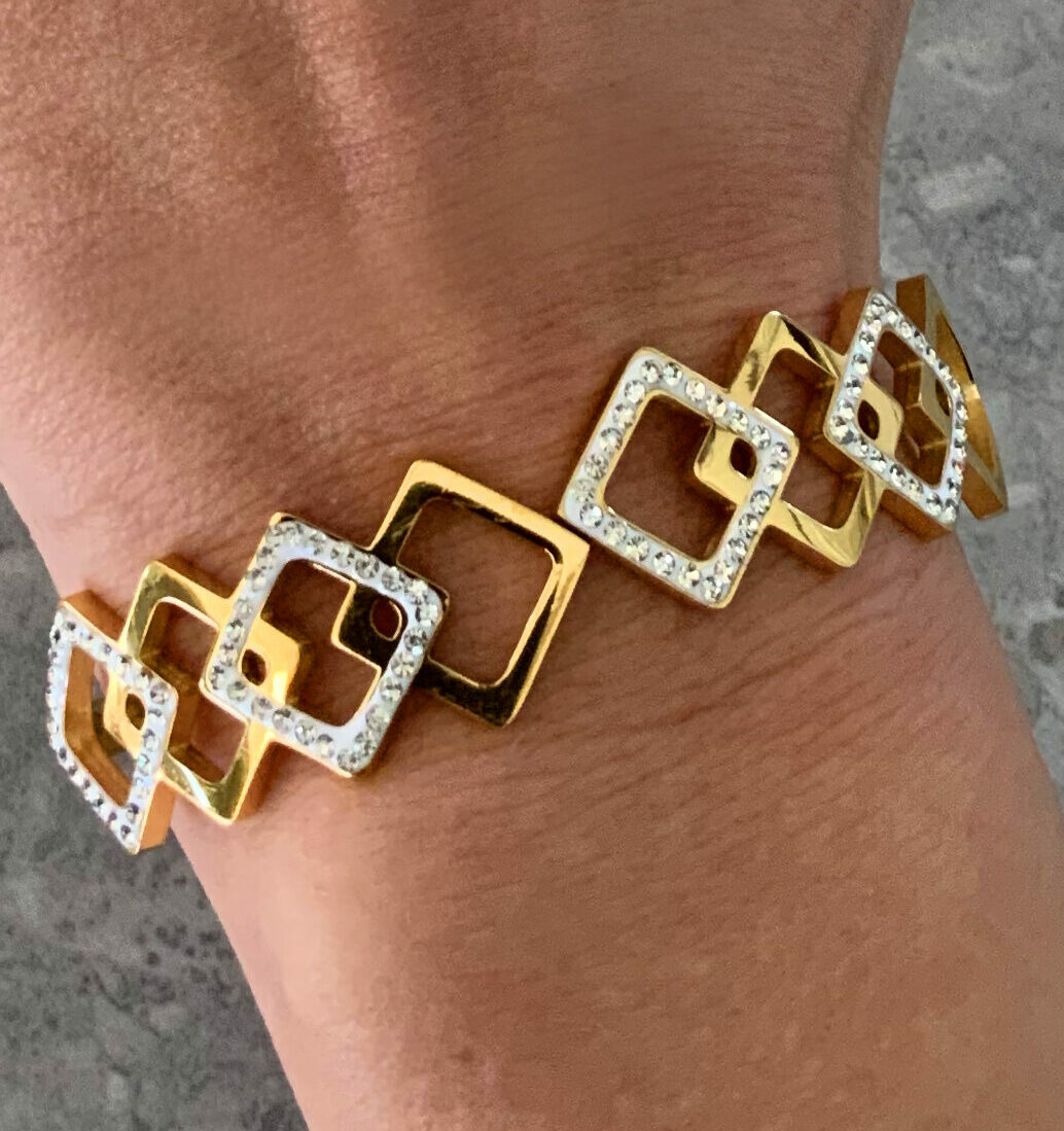 צמיד הרמוניית הריבועים עם סגירה קלה בצבע זהב. לא מחליד לא משחיר.