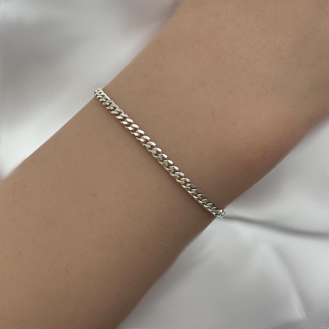 צמיד חוליות דקות מכסף 925 איטלקי טהור לאישה בחיתוך יהלום. מצופה ברודיום להגנה מפני התחמצנות ושריטות. התכשיט מגיע באריזת מתנה ממותגת ומהודרת! חצי שנה אחריות.