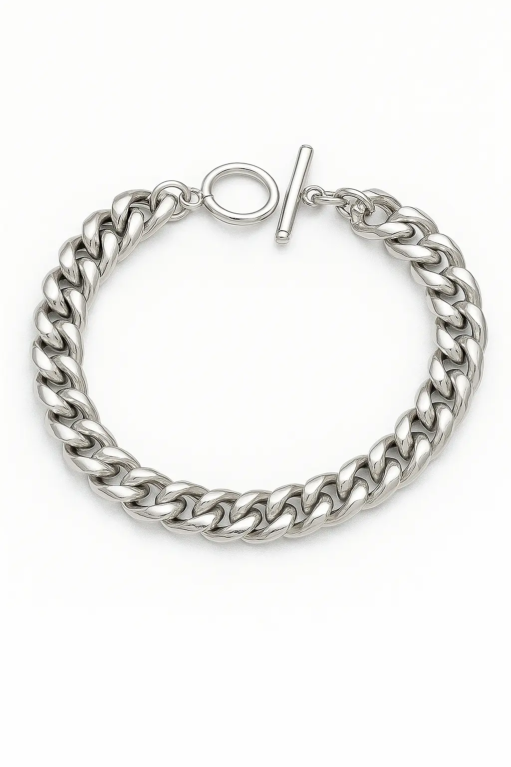 צמיד חוליות עבות בסגנון קובני עם סגירת T