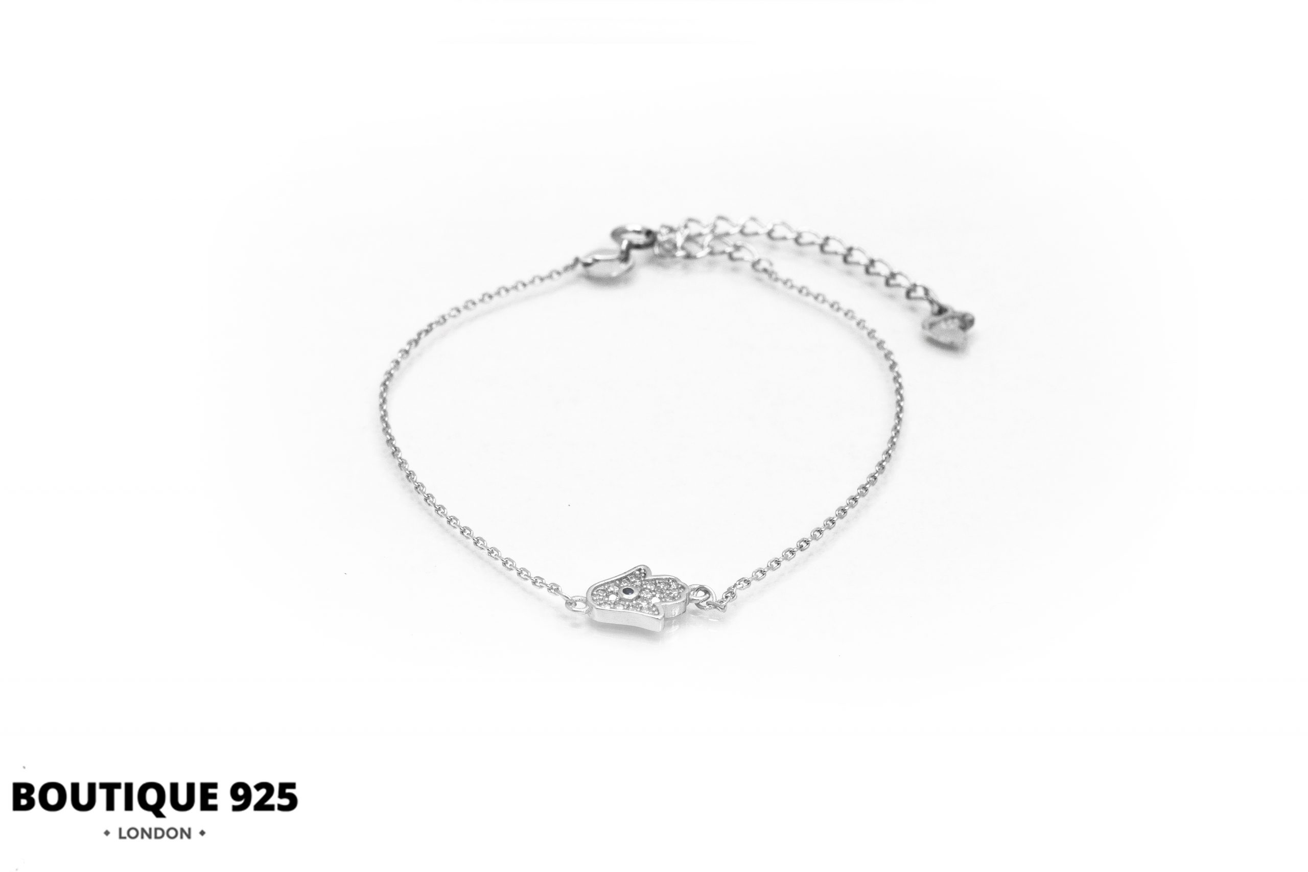 צמיד חמסה משובץ זירקונים מכסף 925 טהור לאישה. הצמיד משובץ בזירקוני AAAA בחיתוך יהלום. מצופה ברודיום להגנה מפני התחמצנות ושריטות. המוצר מגיע באריזת מתנה ממותגת ומהודרת! חצי שנה אחריות.