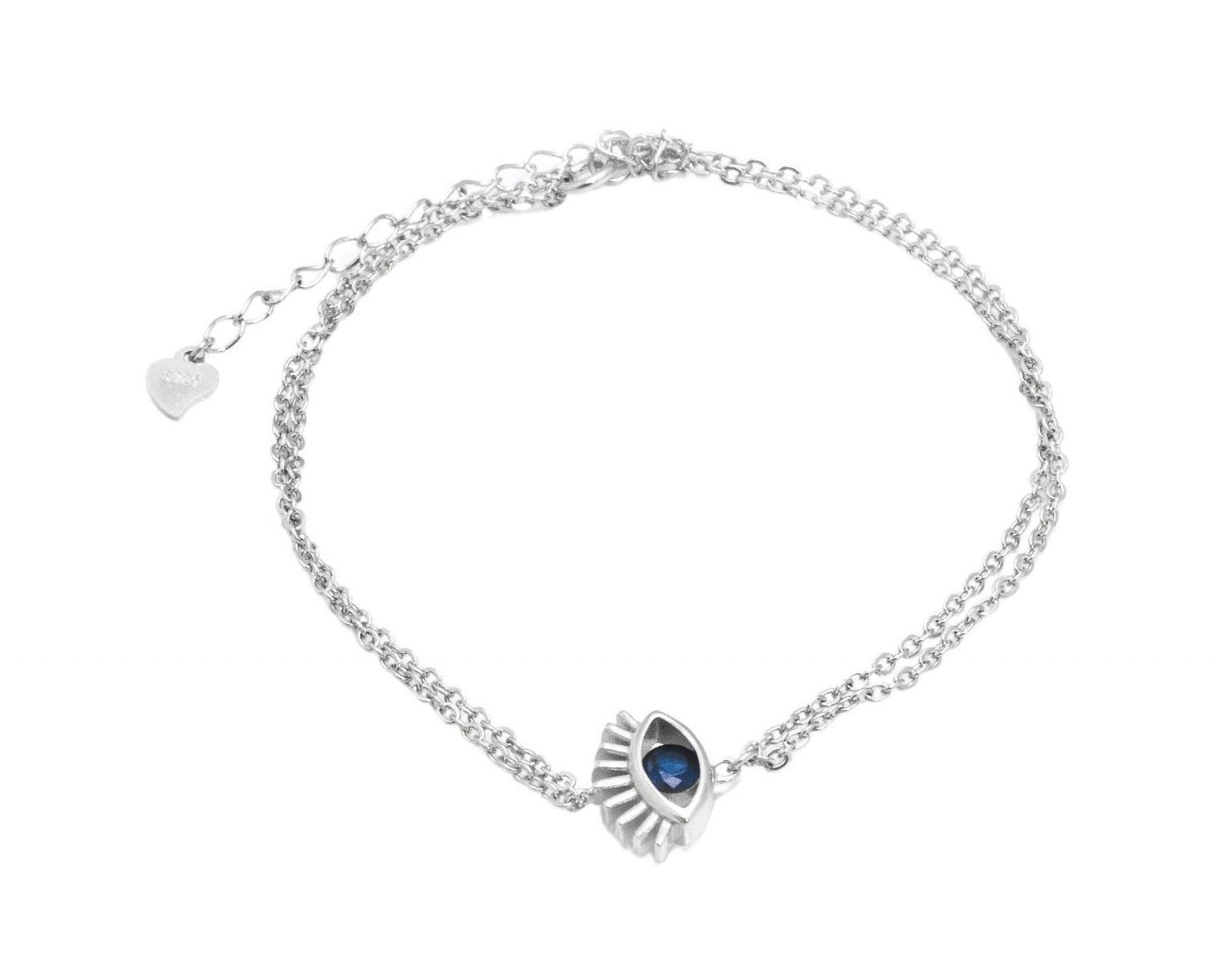 צמיד טבעת עין משובץ בזירקון כחול מכסף 925 טהור לאישה. הצמיד משובץ בזירקון AAAA בחיתוך יהלום. מצופה ברודיום להגנה מפני התחמצנות ושריטות. המוצר מגיע באריזת מתנה ממותגת ומהודרת! חצי שנה אחריות.