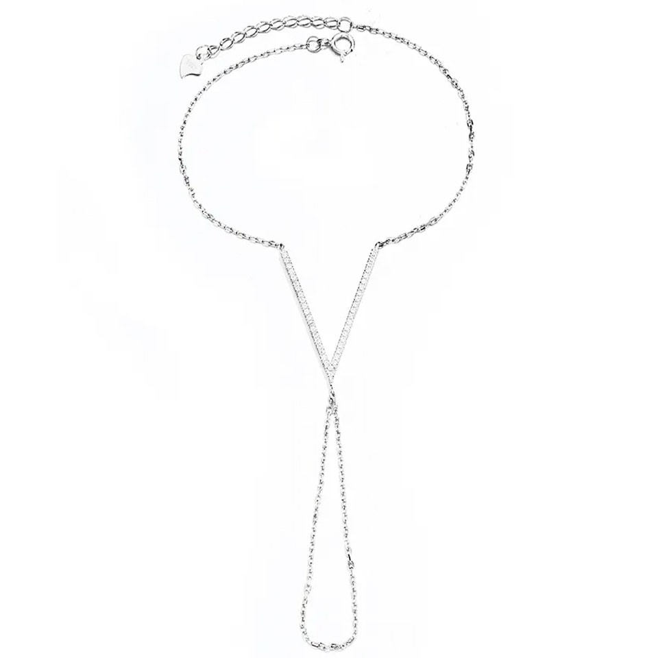 לצמיד מחוברת שרשרת שמתחברת לטבעת הנענדת על אחת האצבעות, ויוצרת הרמוניה לתכשיט מקסים שמושך את העין.