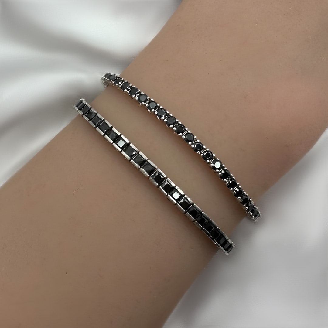 צמיד טניס משובץ זירקונים מרובעים שחורים