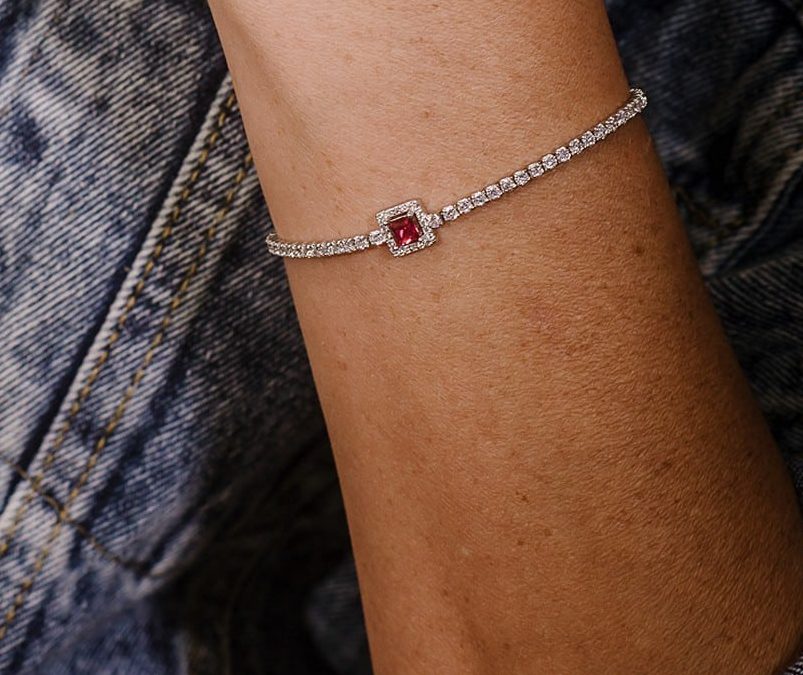 צמיד טניס משובץ זרקן אדום וזירקונים