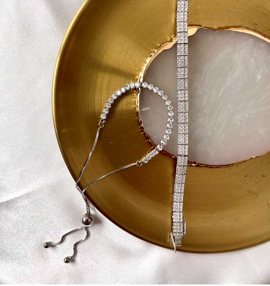 צמיד טניס שיבוץ עגול עם סוגר חוט שמאפשר לך להתאים את הצמיד במדוייק לידך, עובי זירקון 0.3 מכסף 925 טהור לאישה. הצמיד משובץ בזירקוני AAAA בחיתוך יהלום. המוצר מגיע באריזת מתנה ממותגת ומהודרת! חצי שנה אחריות.