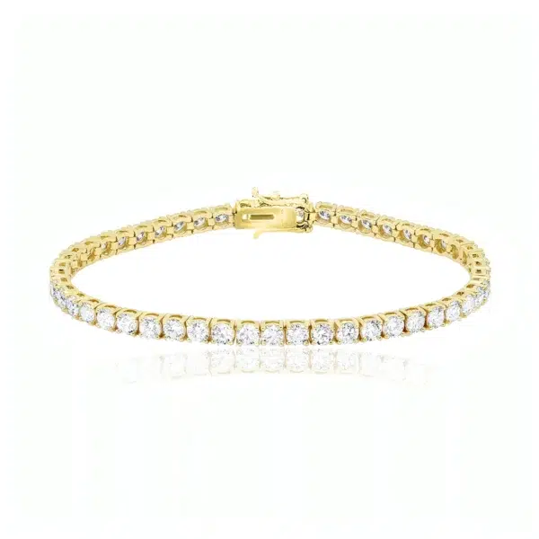 צמיד טניס זהב משובץ זירקונים עגולים מכסף 925 שמצופה בזהב 14K.