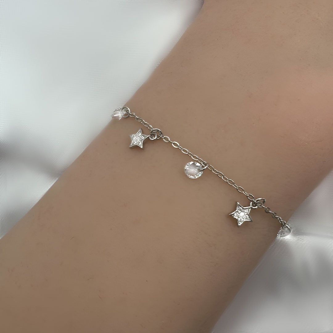 צמיד כסף כוכבים מנצנצים משובצים זירקונים מכסף 925 טהור לאישה. הצמיד משובץ בזירקוני AAAA בחיתוך יהלום. מצופה ברודיום להגנה מפני התחמצנות ושריטות. המוצר מגיע באריזת מתנה ממותגת ומהודרת! חצי שנה אחריות.