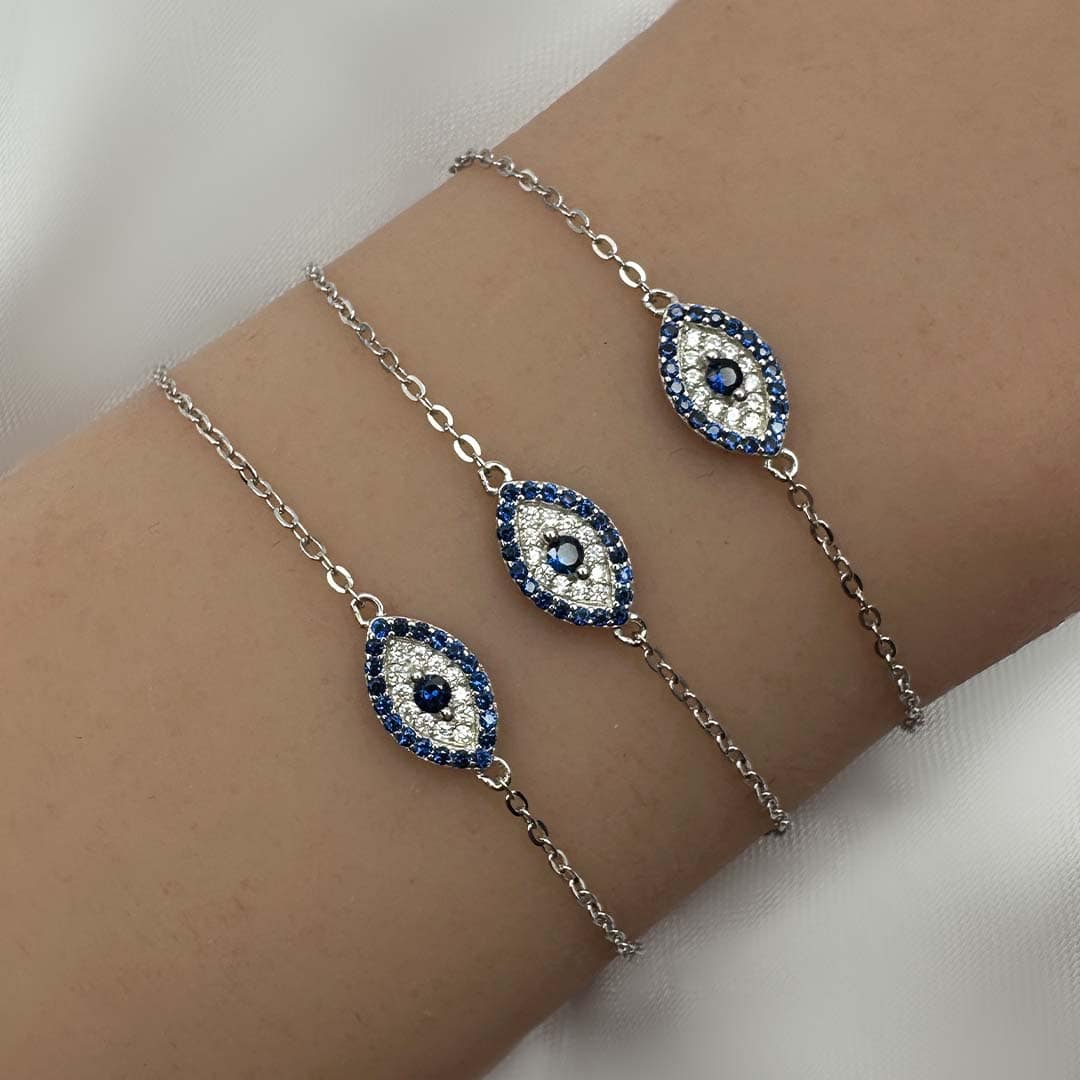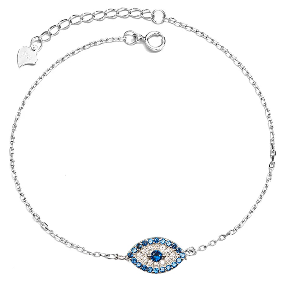 צמיד כסף עין הרע שיבוץ כחול