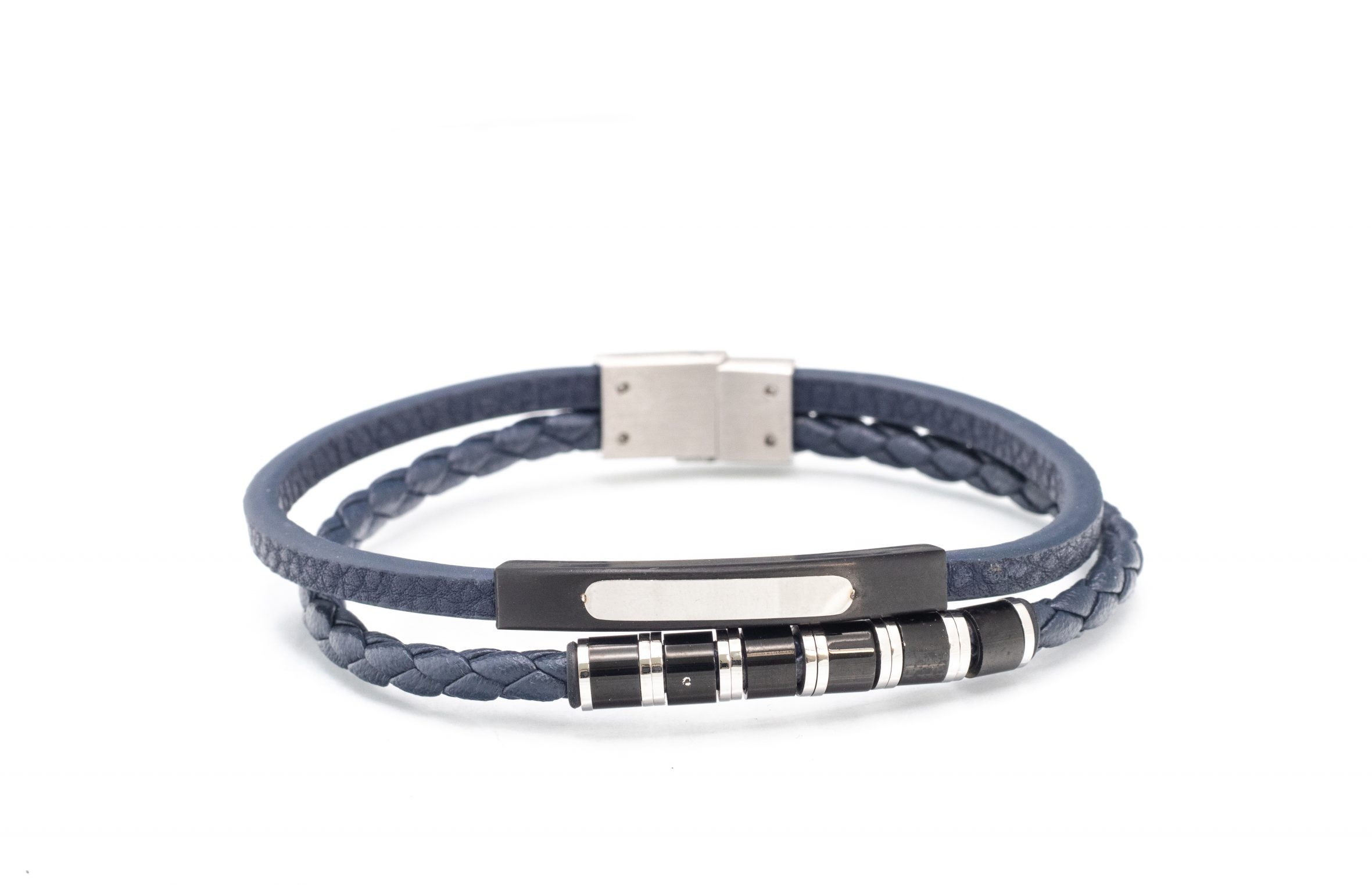 צמיד כפול עם אלמנט כפול לגבר בצבע כחול ושחור. הצמיד עשוי מ-Stainless Steel ורצועות דמוי עור כחולות. המוצר מגיע באריזת מתנה ממותגת! חצי שנה אחריות.