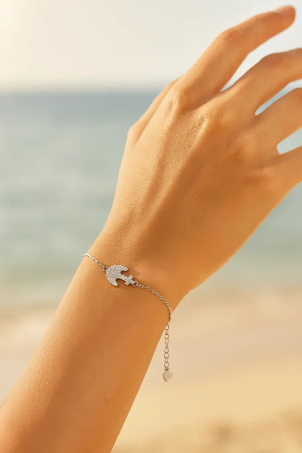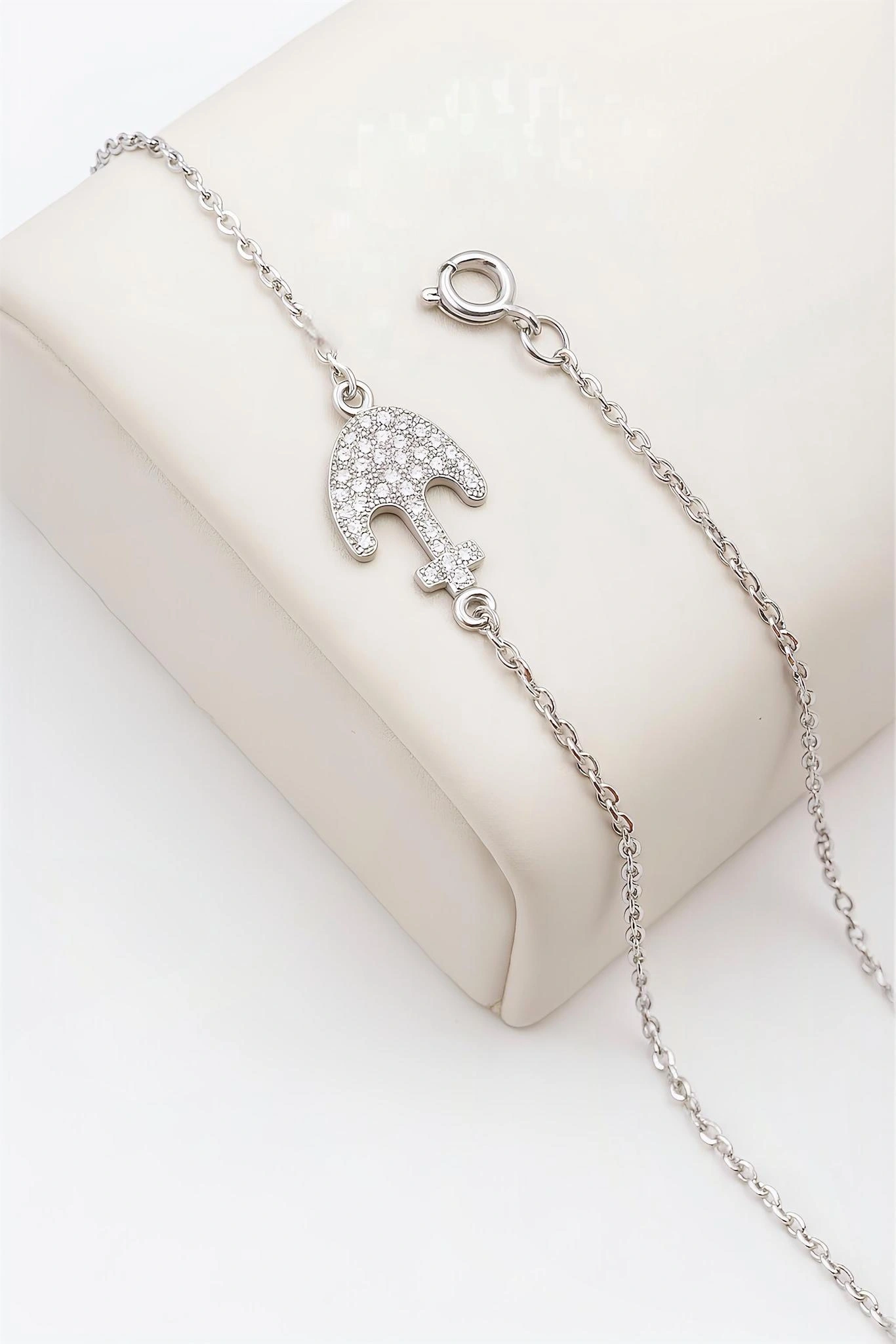 צמיד עדין עם תליון עוגן משובץ זירקונים נוצצים, עשוי כסף סטרלינג 925.