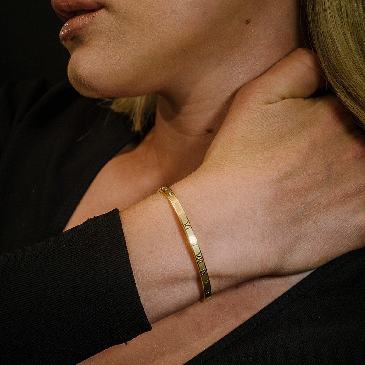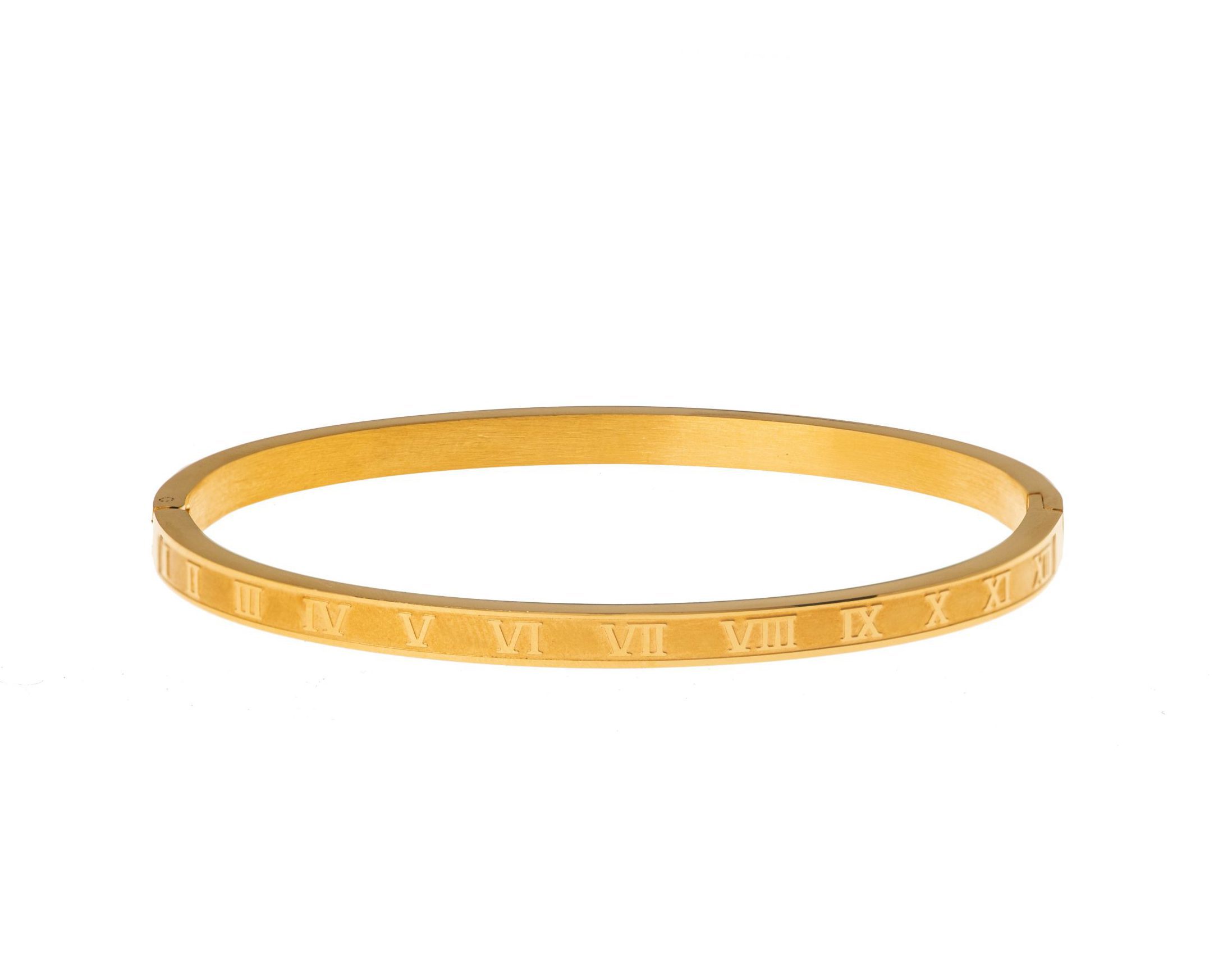 צמיד רומי קשיח בצבע זהב עשוי מ-Stainless Steel. המוצר מגיע באריזת מתנה ממותגת ומהודרת! חצי שנה אחריות.