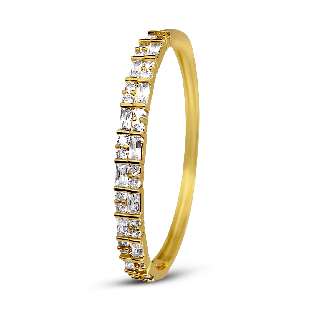 צמיד שובלי בגטים וזירקונים – הצמיד קשיח ועשוי פלדת אל חלד מצופה בזהב הצמיד לא מחליד ולא משחיר. מגיע באריזת מתנה ממותגת ומהודרת עם מטלית לניקוי תכשיטים ללא עלות! חצי שנה אחריות.