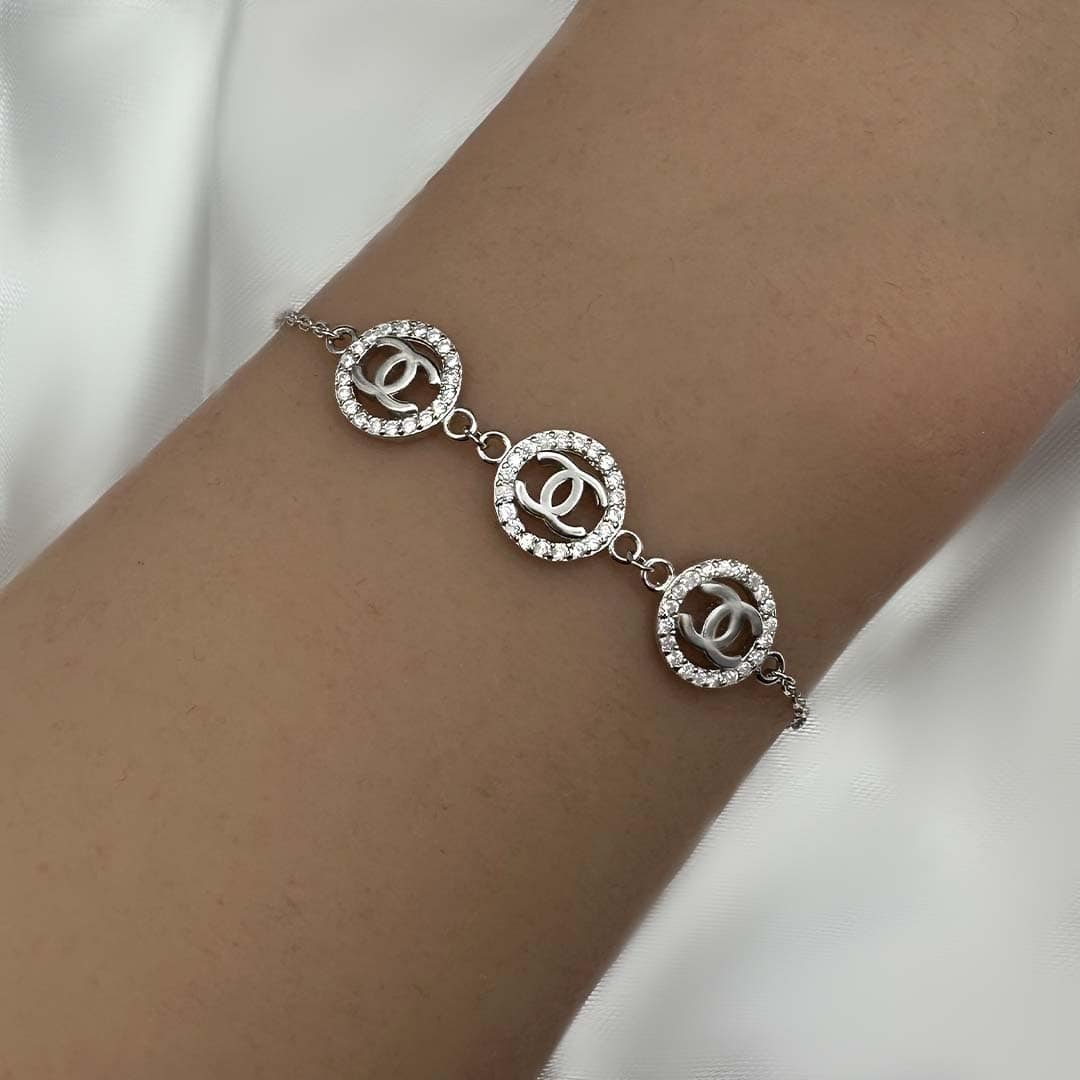 צמיד עם שלושה אלמנטים עגולים משובץ זירקונים מכסף 925 טהור לאישה. הצמיד משובץ בזירקוני AAAA בחיתוך יהלום. מצופה ברודיום להגנה מפני התחמצנות ושריטות. המוצר מגיע באריזת מתנה ממותגת ומהודרת! חצי שנה אחריות.