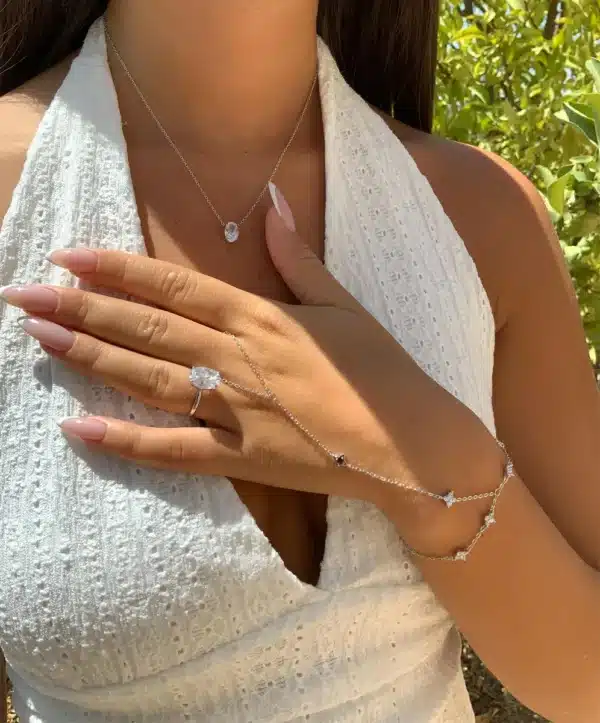 השרשרת משובצת באבן אחת בלבד, כדי למקד את כל תשומת הלב ביופייה הטהור, ללא הסחות מיותרות. תכשיט שילך איתך לכל מקום, יתאים לכל אירוע, וילכוד כל מבט שייפגש בו.