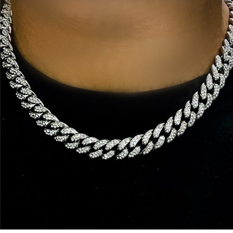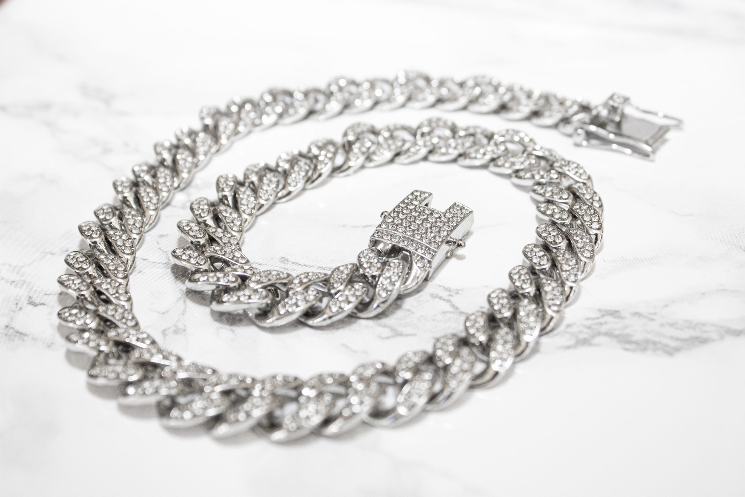 שרשרת גורמט משובצת זירקונים צבע כסף לגבר. השרשרת משובצת בזירקוני AAAA בחיתוך יהלום.