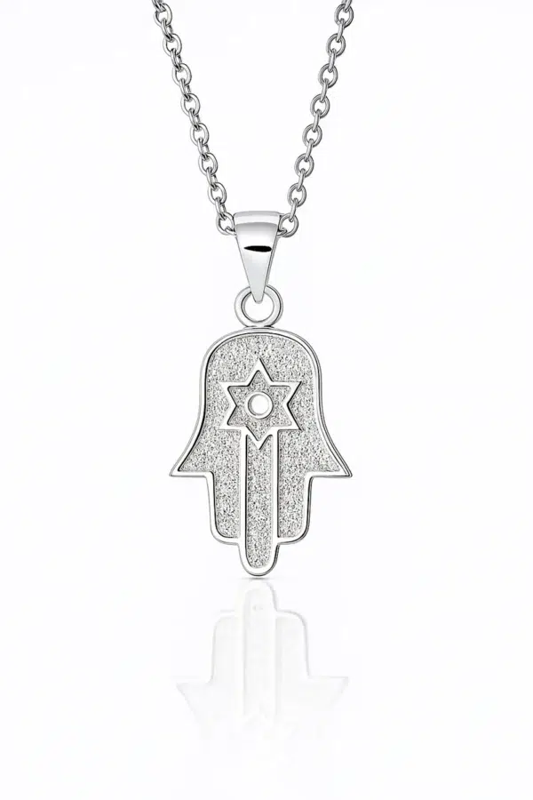 שרשרת חמסה עם מגן דוד מכסף 925 טהור לגבר. חצי שנה אחריות. השרשרת מגיעה עם אריזת מהודרת וממותגת עם מטלית לניקוי תכשיטי כסף ללא עלות וחצי שנה אחריות