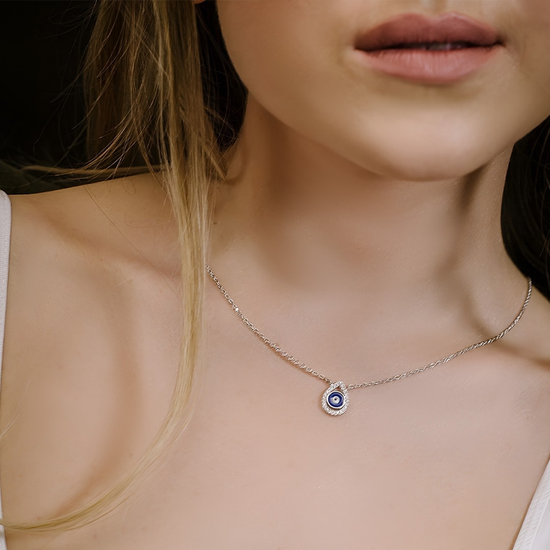 שרשרת טיפה עם עין מכסף משובצת בזירקונים
