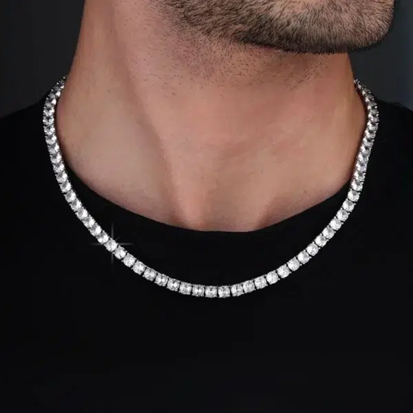 שרשרת טניס אייס לגבר משובצת זירקונים עגולים בעובי 5 מ"מ שהונחו בעבודת יד. ניתן להרטיב את השרשרת, לא משחירה.