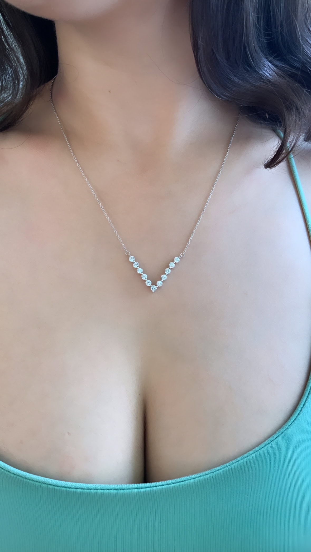 שרשרת V יוקרתית משובצת זירקונים מכסף 925 טהור לאישה. השרשרת משובצת בזירקוני AAAA בחיתוך יהלום. מצופה ברודיום להגנה מפני התחמצנות ושריטות. המוצר מגיע באריזת מתנה מהודרת וממותגת! חצי שנה אחריות.