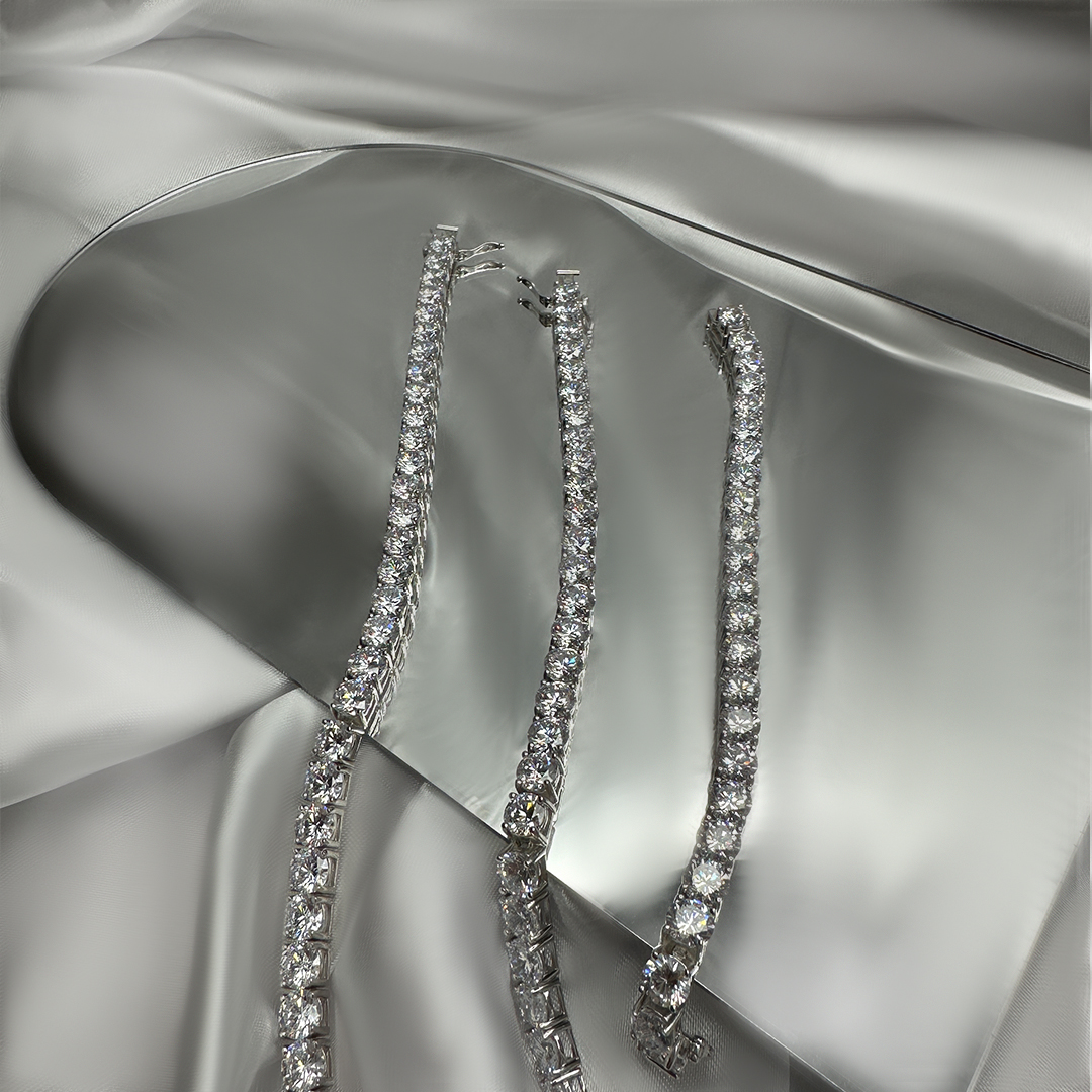 סט טניס משובץ בזירקונים גדולים 5 מ"מ