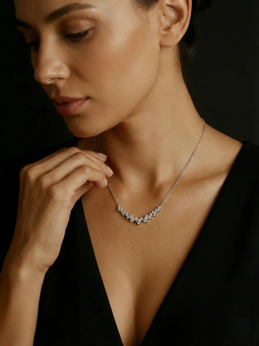 השרשרת משובצת בזירקון מרכזי בעובי 3 מ"מ, כאשר האבנים הולכות וקטנות בהדרגה עד לעובי 1 מ"מ.