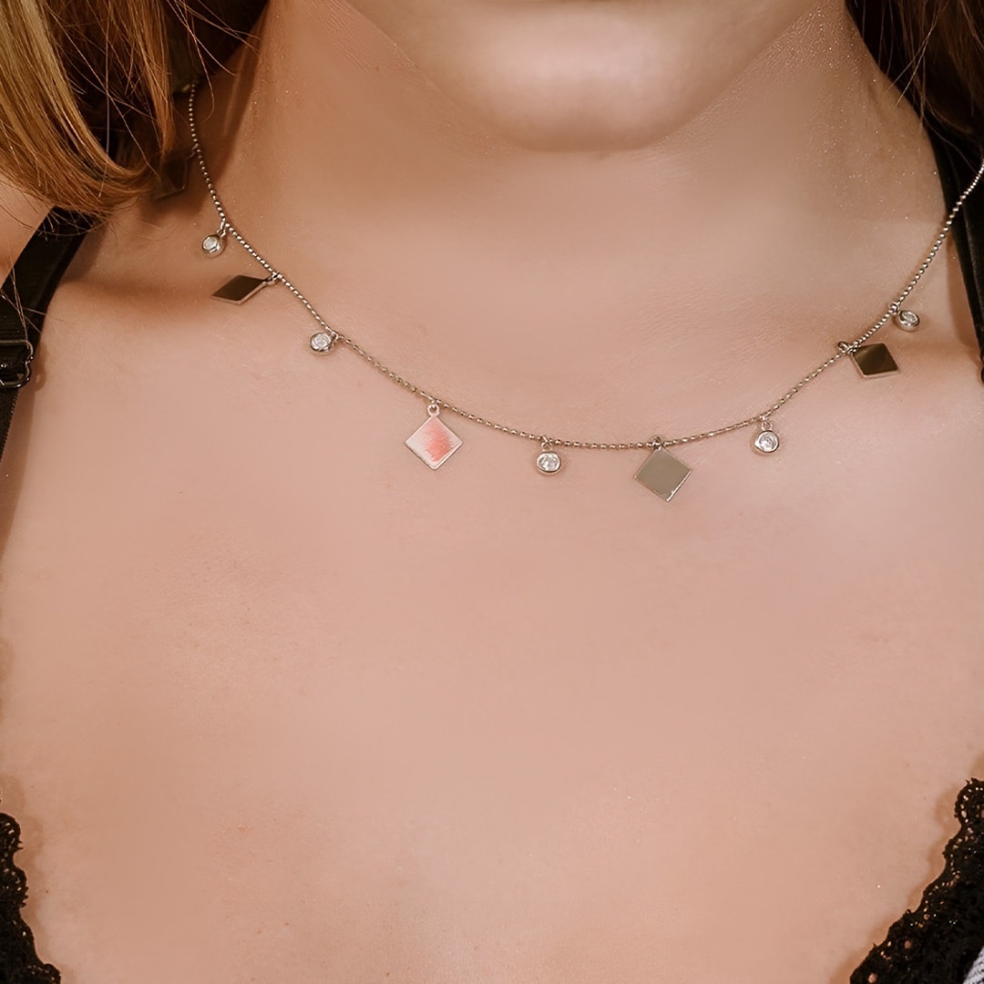 שרשרת עיגולים עם אלמנט מרובע משובצת בזירקונים מכסף 925 טהור לאישה. השרשרת משובצת בזירקוני AAAA בחיתוך יהלום. מצופה ברודיום להגנה מפני התחמצנות ושריטות. המוצר מגיע באריזת מתנה מהודרת וממותגת! חצי שנה אחריות.