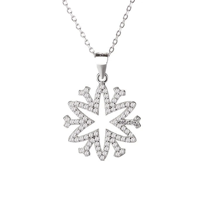 שרשרת פתית שלג גדול משובצת בזירקונים מכסף 925 טהור לאישה. השרשרת משובצת בזירקוני AAAA בחיתוך יהלום. מצופה ברודיום להגנה מפני התחמצנות ושריטות. המוצר מגיע באריזת מתנה מהודרת וממותגת! חצי שנה אחריות.