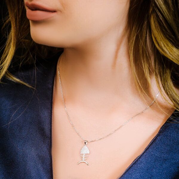 שרשרת שלד דג מכסף משובץ בזירקונים